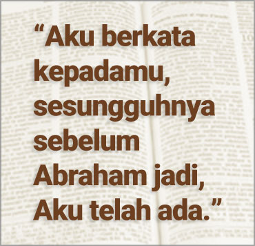 Maka kata orang-orang Yahudi itu kepadaNya: "Umur-Mu belum sampai lima puluh tahun dan Engkau telah melihat Abraham?" Kata Yesus kepada mereka: "Aku berkata kepadamu, sesungguhnya sebelum Abraham jadi, Aku telah ada." Lalu mereka mengambil batu untuk melempari Dia; tetapi Yesus menghilang dan meninggalkan Bait Allah.1